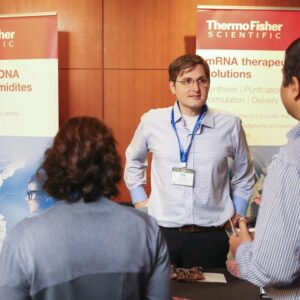 During the lunch break, Maire Osborn (Khvorova lab, now Dicerna) and Shruti Sasaki (Ionis), the OTS traineeBoard representatives, had organised the NextGen Early Career Scientist Session. This session consisted of a keynote address by Jason Shepherd (University of Utah)and 7 short talks by early career scientists who were competing for the top spot as voted by their peers. The session was fully booked, with standing room only. Out of the impressive selection, “Harnessing Endogenous ADARs for Transcript Repair” by Tobias Merkle (University of Tübingen) was voted the winner of the best talk.