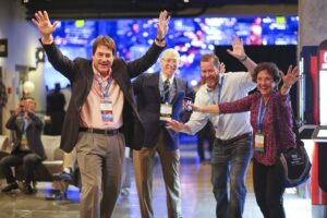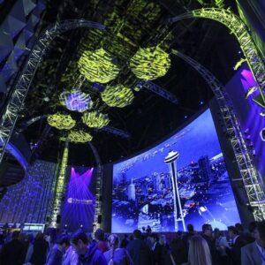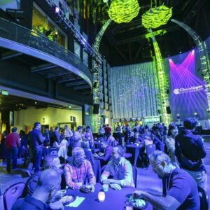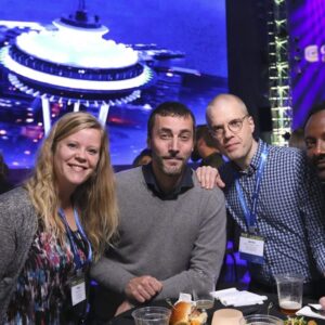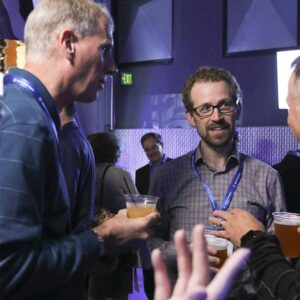 We got the afternoon off to socialise or explore Seattle and then there was the party! Geri and Alexis (Event Innovations), our event organisers, managed to top last year’s fantastic party at a wine-producing Chateau outside Bordeaux by booking the Seattle Museum of Pop Culture. You could explore the exhibits, have some food and drink, chat or dance in front of a massive screen (showing the Space needle in the picture – MoPOP is right next to it!).