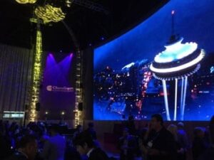 We got the afternoon off to socialise or explore Seattle and then there was the party! Geri and Alexis (Event Innovations), our event organisers, managed to top last year’s fantastic party at a wine-producing Chateau outside Bordeaux by booking the Seattle Museum of Pop Culture. You could explore the exhibits, have some food and drink, chat or dance in front of a massive screen (showing the Space needle in the picture – MoPOP is right next to it!).