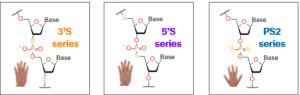“Expanding the Drug Property Space of Locked Nucleic Acids through (thio)phosphate modifications” by JörgDuschmalé (Roche Innovation Centre Basel) was another great talk. Leading on from Marvin Caruther’sLifetime Achievement Award lecture, he told us about the use of thiophosphate modifications in stereo-defined LNA gapmer oligonucleotides to reduce diastereoisomericdiversity. He showed that 3′ and 5′ thiophosphate backbone modifications (see picture) perform poorly due to limited stability against nucleasedegradation, but that up to 4 non-chiral phosphorodithioatesin combination with stereo-defined phosphorothioate linkages can improve in vivo potency. A great talk with the chemistry so well explained that even chemically challenged me could follow it! Stereochemistry is of course a hot topic in the field, so there was another talk on this topic by Chandra Vargeese (Wave) in the next session (I covered some of Wave’s work here).