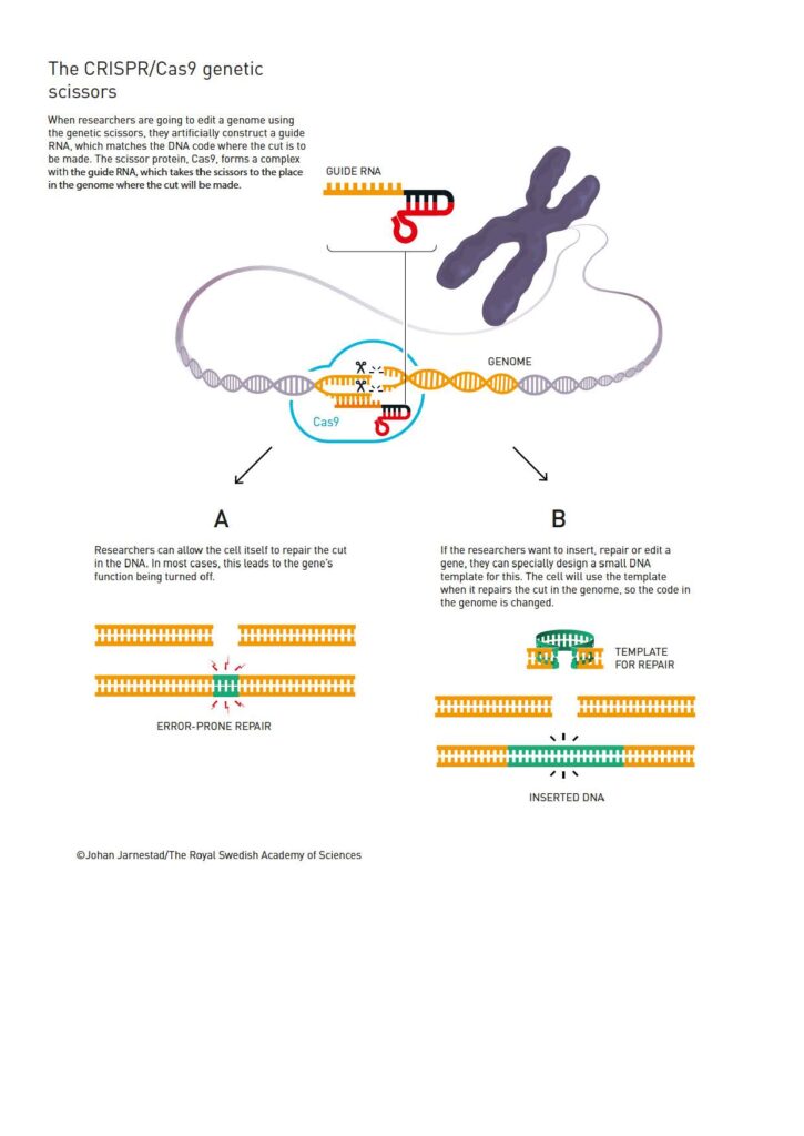- Fernholm, Ann. “Genetic Scissors: a Tool for Rewriting the Code of Life.” NobelPrize.org, The Royal Swedish Academy of Sciences, 7 Oct. 2020, www.nobelprize.org/uploads/2020/10/popular-chemistryprize2020.pdf.